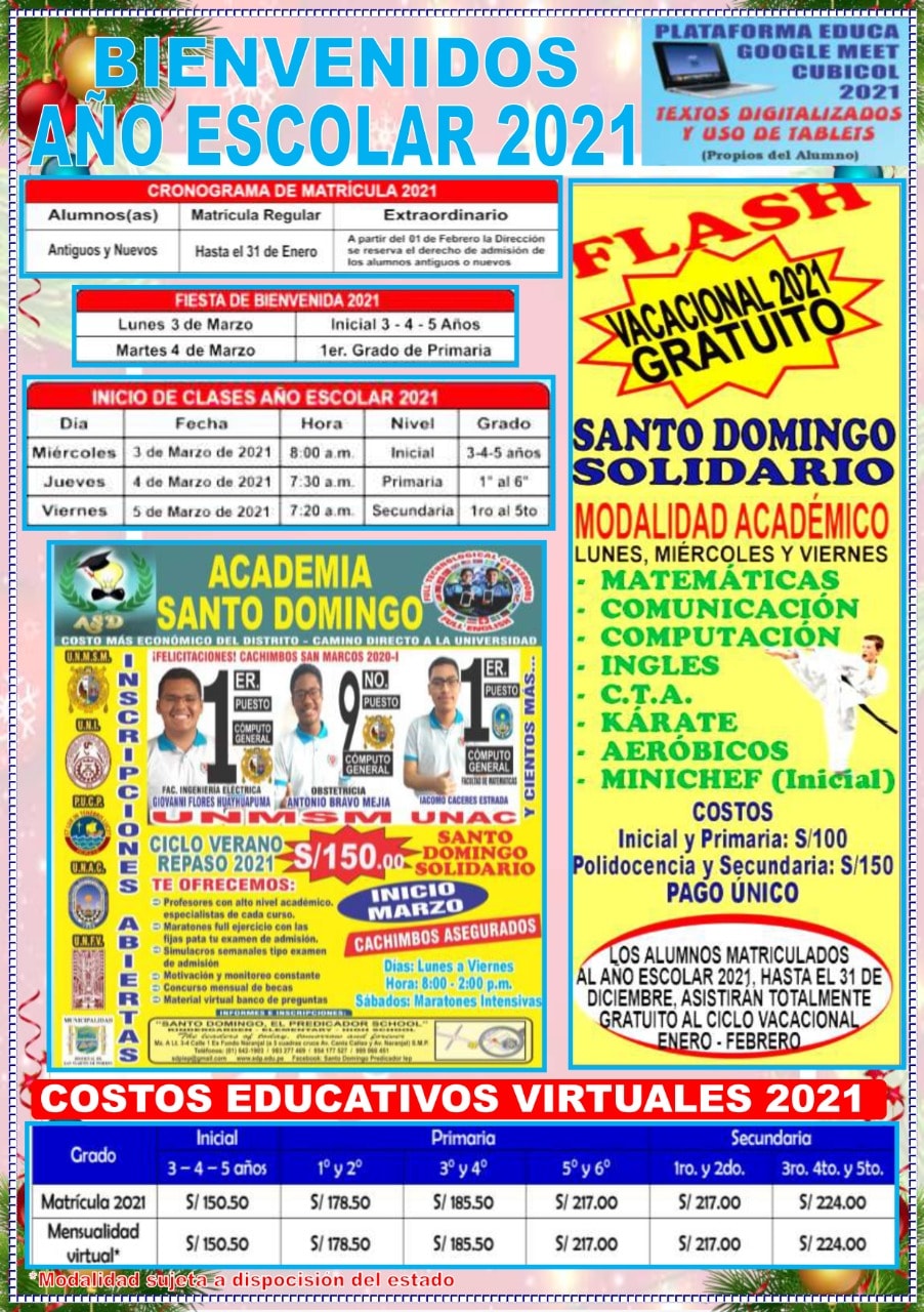 BasquetArtes marciales Aerobicos canto marinera diseño programación ofimática quechua e inglesBIENVENIDOS – QUE NADIE SE QUEDA ATRAS ! FELICITACIONES ! UN CORDIAL SALUDO DE LA PARTE ADMINISTRATIVA. Atención VIRTUAL PREVIA CITA atención presencial Debido a la alta demanda de atención Read more